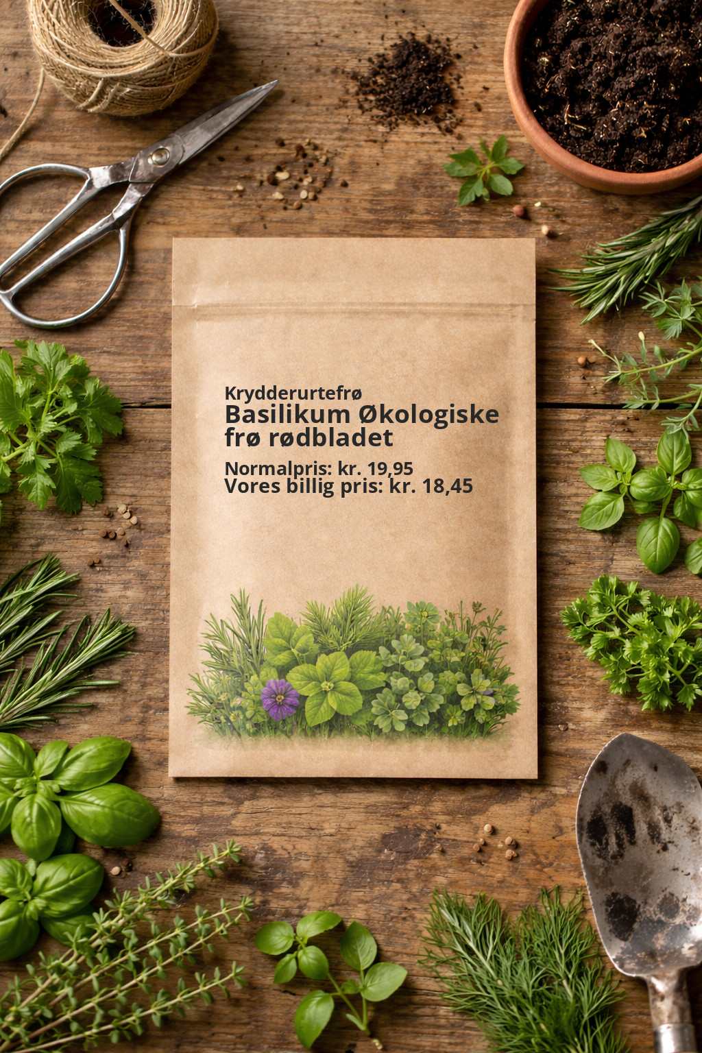 Økologisk rødbladet basilikum med intens farve og smag. Perfekt til både køkkenhaven og madlavning.