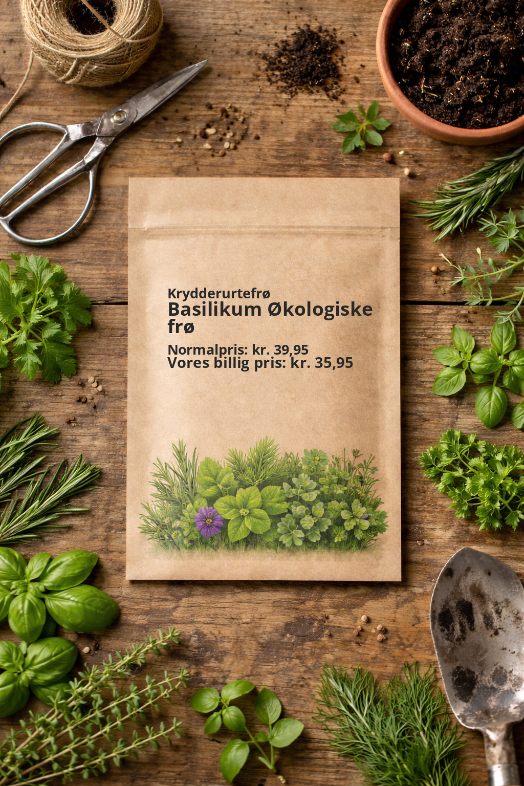 Økologisk dyrket basilikum med store, aromatiske blade. Ideel til salater, pesto og italienske retter.