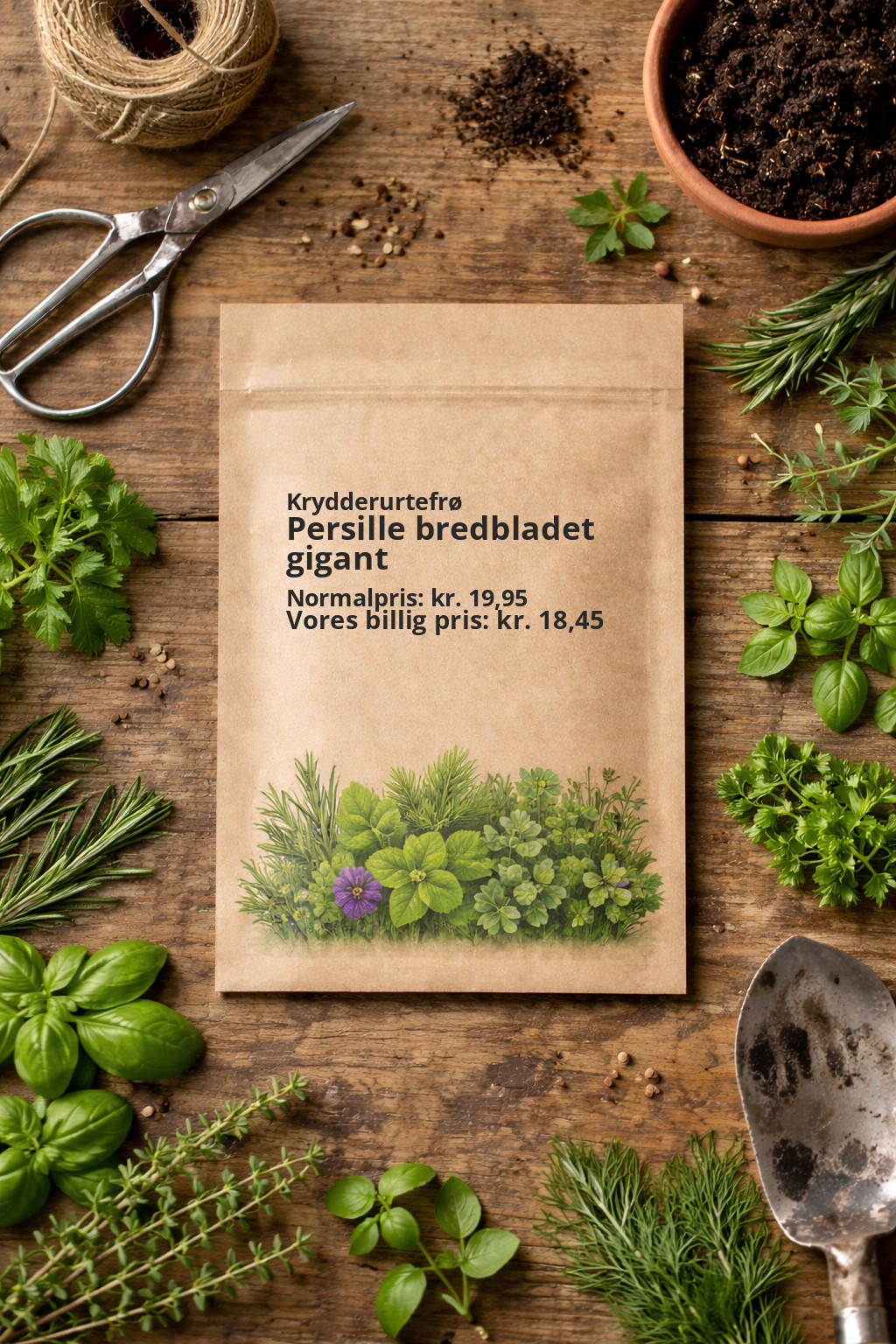 Storbladet persille med intens smag og hurtig vækst. Perfekt til salater og varme retter.