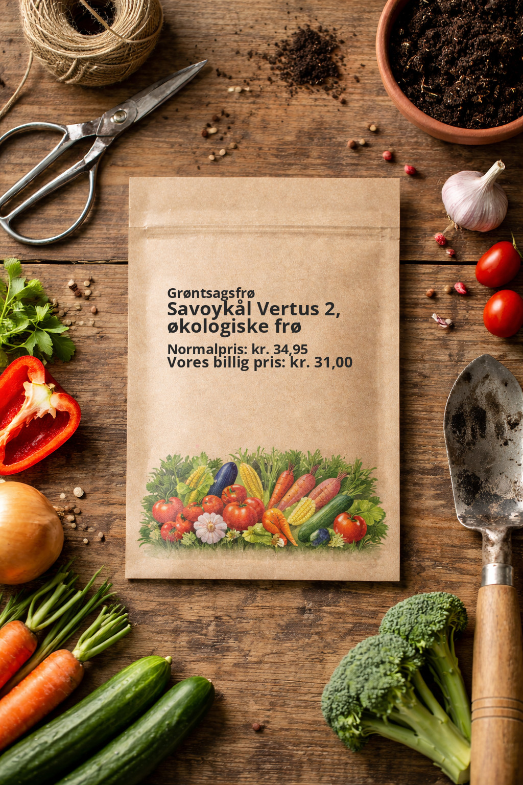 Savoykål Vertus 2, økologiske frø er en velsmagende og dyrkningssikker sort til køkkenhaven. Planterne giver et stabilt udbytte og trives godt under danske forhold. Velegnet til både friland, drivhus og alsidig anvendelse i madlavningen.